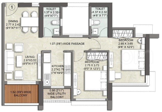 Offering plush 2 Bed balcony apartments with three-side open residences,letting you enjoy the serene hues of majestic Thane sky.